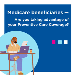 Medicare beneficiaries – Are you taking advantage of your Preventive Care Coverage?Copy:Are you taking advantage of your Preventive Care Coverage? Your Medicare plan includes many preventive care services, including wellness visits, screenings and vaccines!